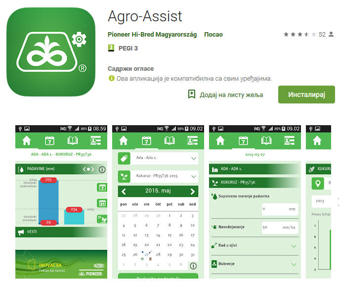 U pitanju je aplikacija za vođenje poljoprivredne evidencije, namijenjena farmerima. Korisnicima pruža informativne i korisne alatke, koje će im olakšati svakodnevni rad. Podrazumijeva digitalnu poljoprivrednu evidencija za vođenje farme, a nudi i podatke o padavinama na datim lokacijama, kao i upozorenja o štetočinama. Njena prednost je i to što korisnicima omogućava da dodaju sve važne informacije i faze rada po lokacijama farme i zasadima, ali i da, što je još važnije, podatke mogu direktno proslijediti izabranom agronomu. Kalendar unutar aplikacije Agro-Assist omogućava kreiranje foto-dnevnika i podešavanje podsjetnika za različite faze i procese rada.