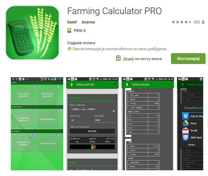 Kompjuteri svakako mogu olakšati posao poljoprovrednicima, s obzirom da je danas na Internet-u moguće pronaći informaciju o svemu što vam padne na um. Tako je i sa poljoprovrednim proračunima, a ova aplikacija je zapravo kalkulator koji će poljoprivrednicima olakšati muke sa mjerama i računanjima. Pomoću nje možete izračunati bitne vrijednosti koje se odnose na brojne poslove tokom poljoprivredne proizvodnje, kao što su đubrenje i korištenje pesticida, ali i gustinu sijanja biljaka, kao i ostale važne brojke. Važno je znati da podatke dobijene uz pomoć ovog, svojevrsnog poljoprivrednog kalkulatora možete sačuvati, ali i nekome slati putem e-mail-a.